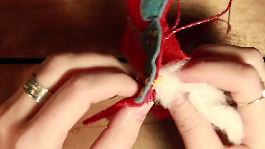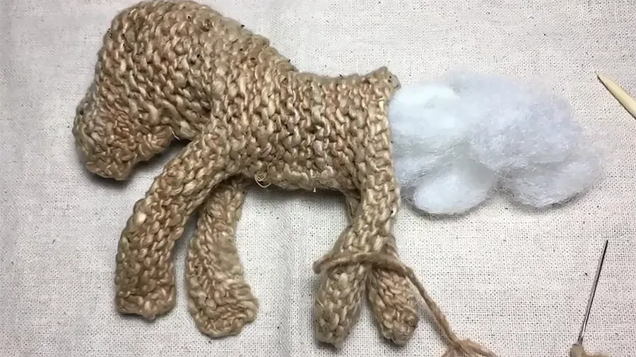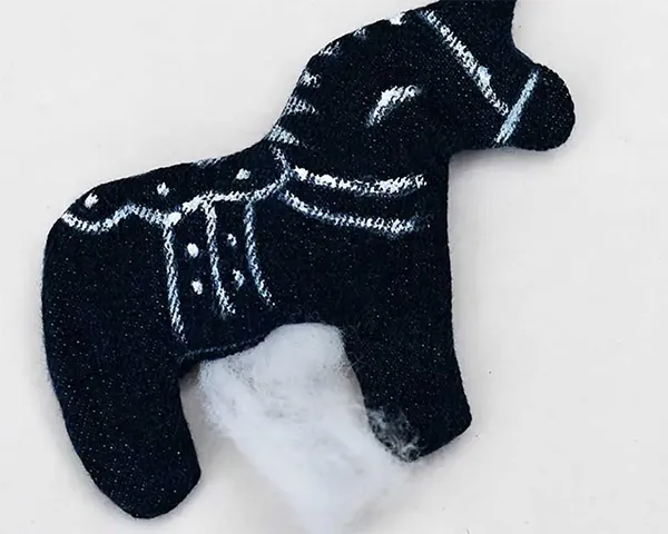 Заполните фигурку лошадки ватой, синтепоном или любым мягким наполнителем, равномерно распределяя его.