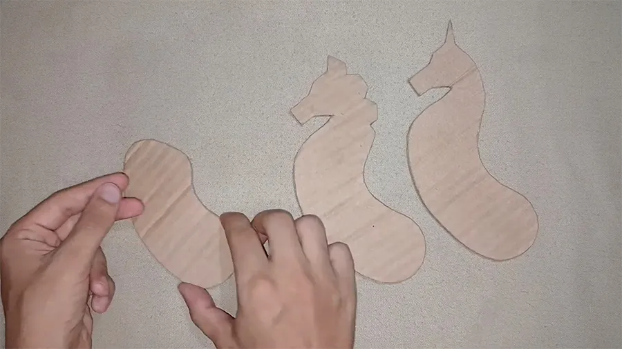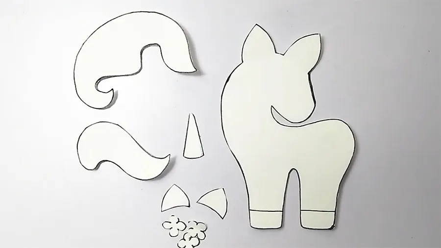 Из плотного картона можно сделать и чуть более сложную объемную конструкцию в виде символа 2026 года. Для такой лошадки вам понадобятся:
