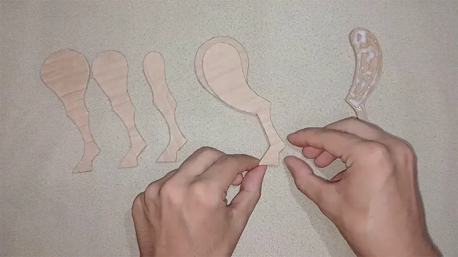 Послойно укладывайте заготовки туловища друг на друга с каждой стороны (от большей к меньшей), приклеивая на ПВА.