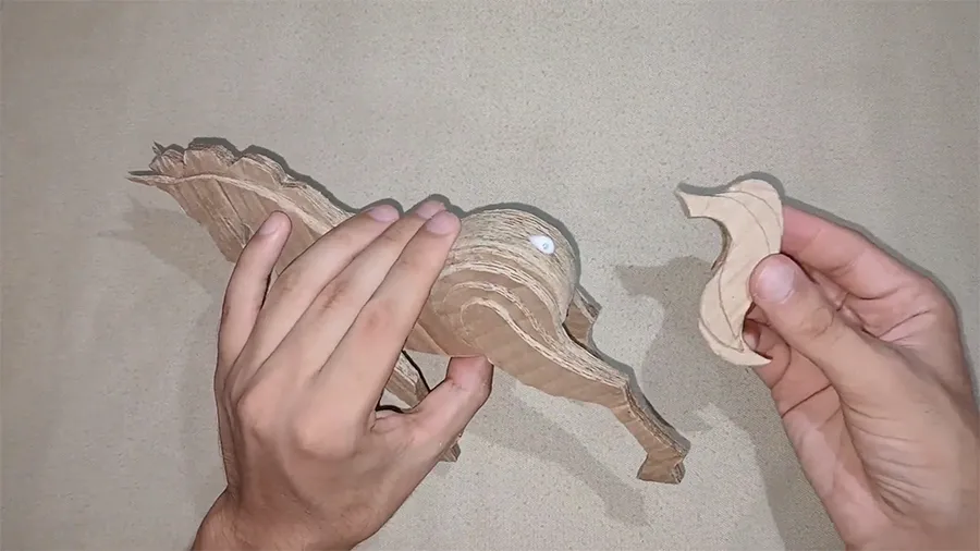 Склейте между собой детали хвоста и прикрепите его к туловищу.