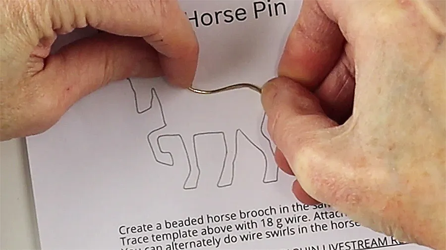 Отрежьте кусок проволоки и сформируйте из него очертания лошадки, ориентируясь на шаблон. Чтобы сделать изгибы, особенно мелкие, используйте круглогубцы.