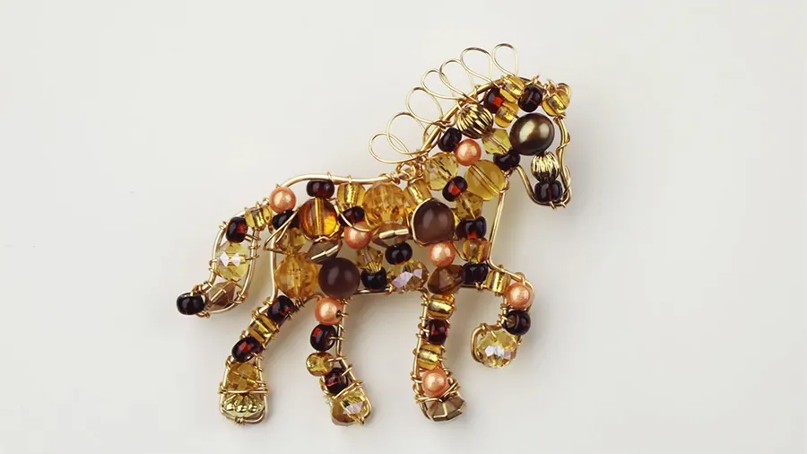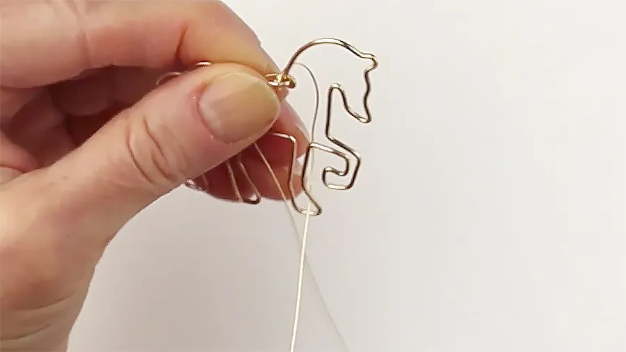 Отрежьте еще немного тонкой проволоки и сделайте из нее гриву, согнув несколько петель по линии головы лошадки. Одну можно сделать побольше для подвеса или привязать к петельке ленту либо нитку.