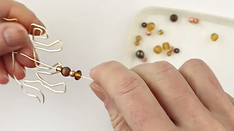 Нанизывайте бусины, смешивая разные формы и размеры на свое усмотрение.