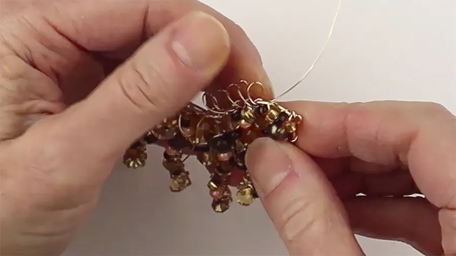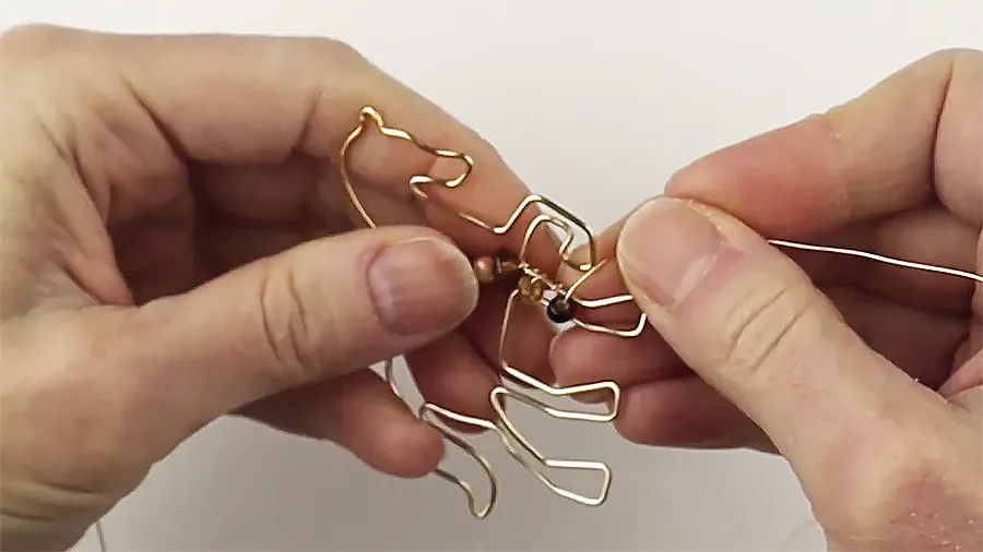 Обмотайте тонкую проволоку несколько раз вокруг каркаса в районе узелка. Оставьте с обеих сторон длинные «хвостики».