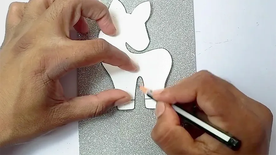 Приложите заготовку лошадки на лист фоамирана, обведите контур карандашом и аккуратно вырежьте основную деталь.