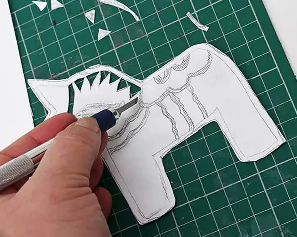 Вырежьте фигуру лошади из бумаги. Если используете детализированную выкройку, для мелких элементов удобнее взять нож.