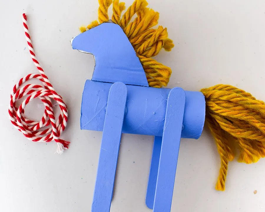 В мастер-классе показан минималистичный вариант поделки в виде лошади. Если хотите сделать игрушку более яркой, можно покрасить картон акрилом или гуашью, добавить блестки и любой другой декор.
