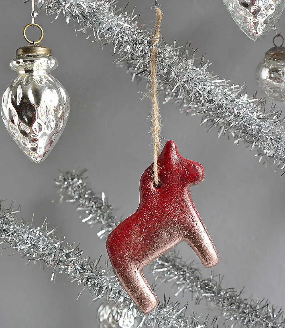 Расправьте фигурку. Новогодняя игрушка на елку в виде красной лошадки готова.