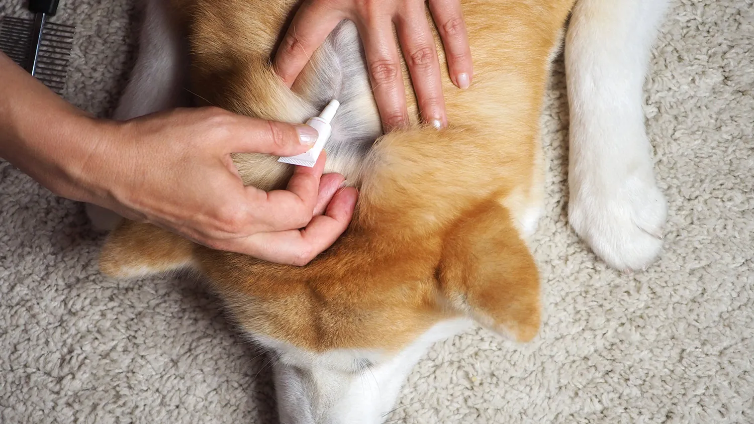 Первым делом питомца нужно помыть специальным шампунем от блох. Он смывает насекомых и их экскременты, снимает зуд и раздражение кожи. Далее используют основное средство защиты: