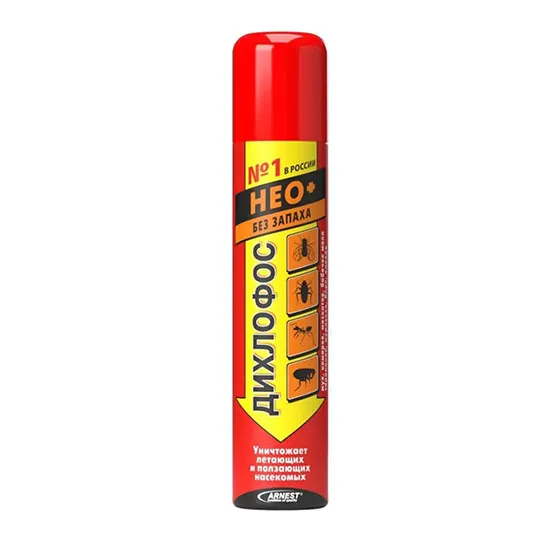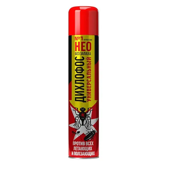 - «Дихлофос-Нео Универсальный» ― современный аналог старого «Дихлофоса», но без запрещенных токсичных веществ. Убивает блох, клопов, тараканов, муравьев. Подходит для обработки квартир, гаражей, подвалов. Быстро действует, но требует осторожности и использования перчаток.
