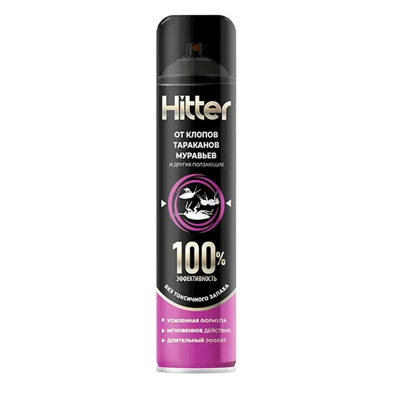 - «Hitter». Аэрозоль с мгновенным действием и долгим остаточным эффектом. Содержит три современных активных компонента, которые усиливают друг друга. Без токсичного запаха. Хороший вариант, если мокриц нужно потравить быстро.