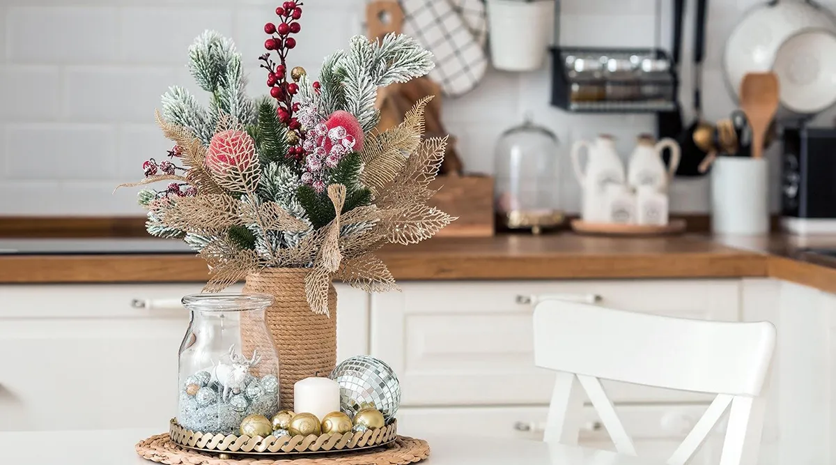 Красиво украсить дом к Новому году помогут праздничные композиции из оставшихся веточек, игрушек, шишек, бантов и прочих украшений. Вы сможете их сформировать и расставить по дому за 15 минут.
