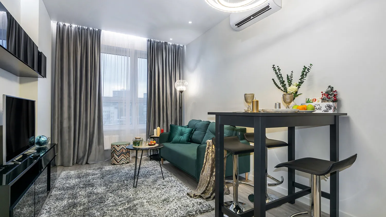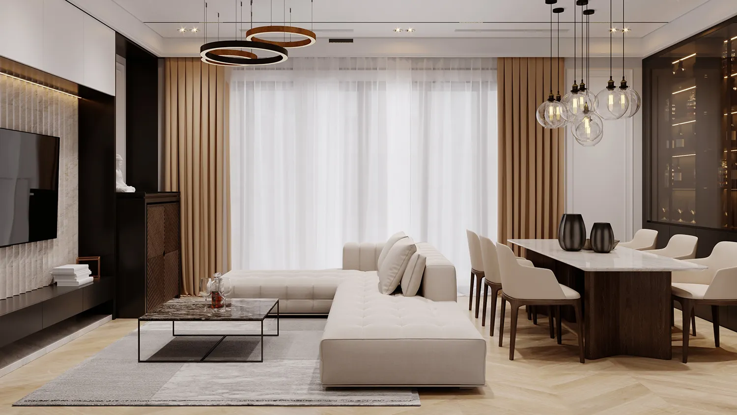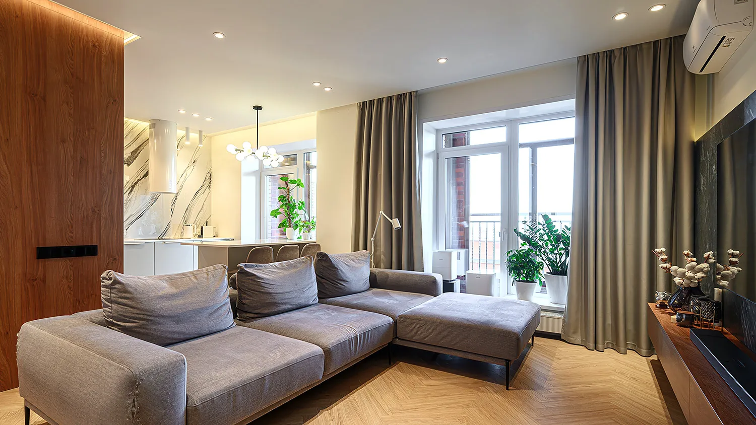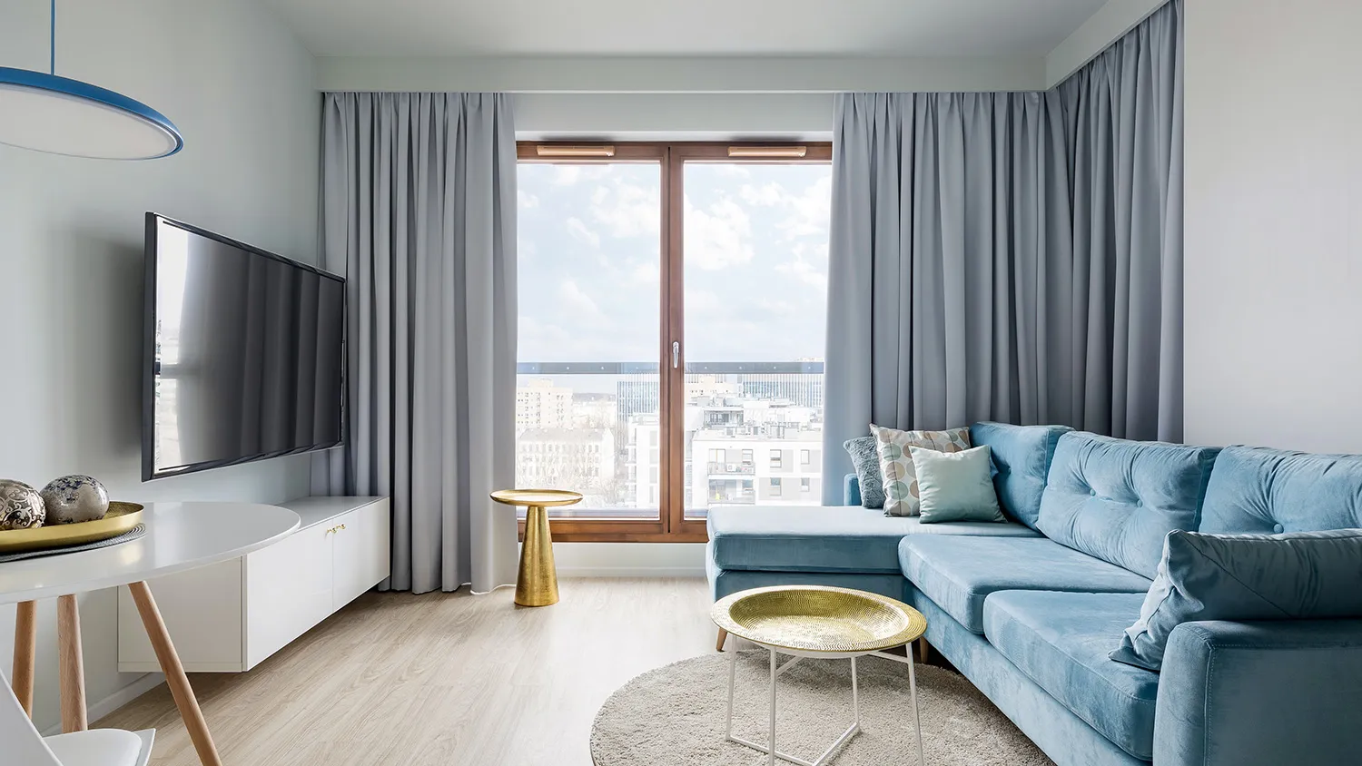 В комнате для приема гостей и семейных мероприятий нужно обеспечить приватность, чтобы защитить личную жизнь от любопытных глаз прохожих и соседей напротив. А также важно создать благоприятные условия для вечернего отдыха или просмотра телевизора, чтобы на экране не мелькали блики.