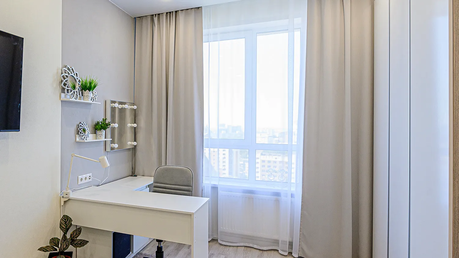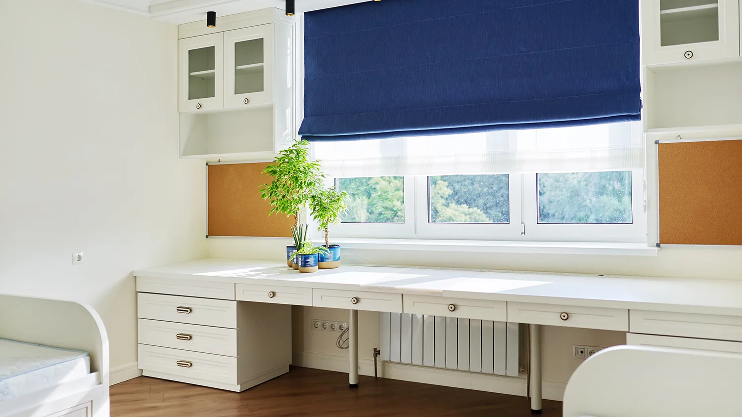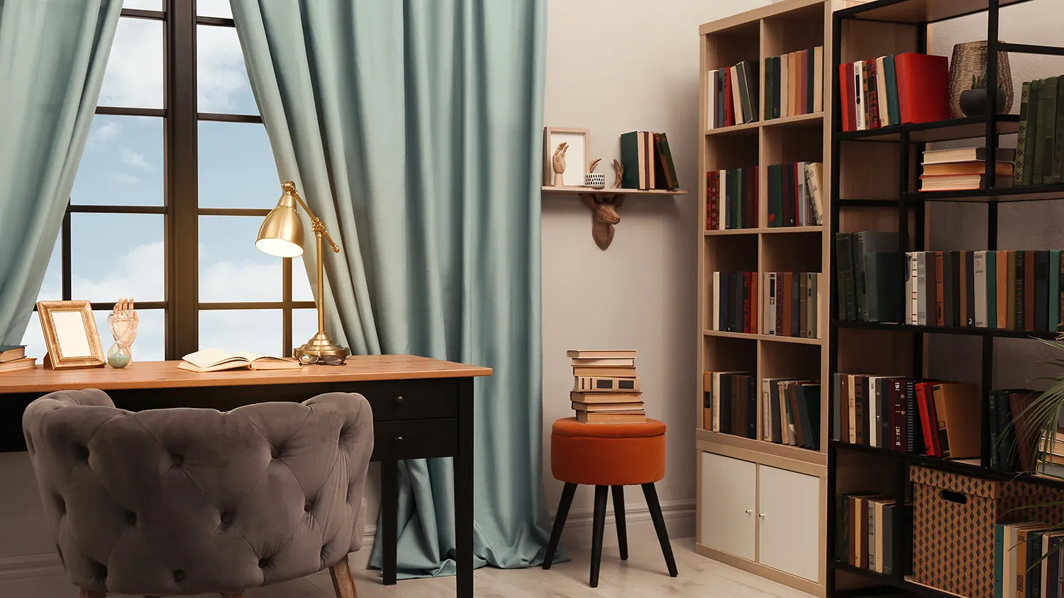Место для работы и учебы особенно нуждается в изоляции от отвлекающих факторов за окном, поэтому занавеси блэкаут могут стать оптимальным выбором: