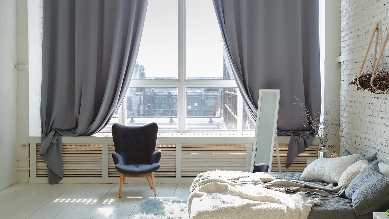 - Если радиаторы отопления расположены классическим способом под подоконником, то закрытые занавеси создают барьер для подачи тепла в комнату, аккумулируя его в арке окна. Выйти из ситуации можно двумя способами: на стадии ремонта перенести отопительные приборы в другое место или при составлении дизайн-проекта предусмотреть укороченные шторы, которые не будут перекрывать батареи.