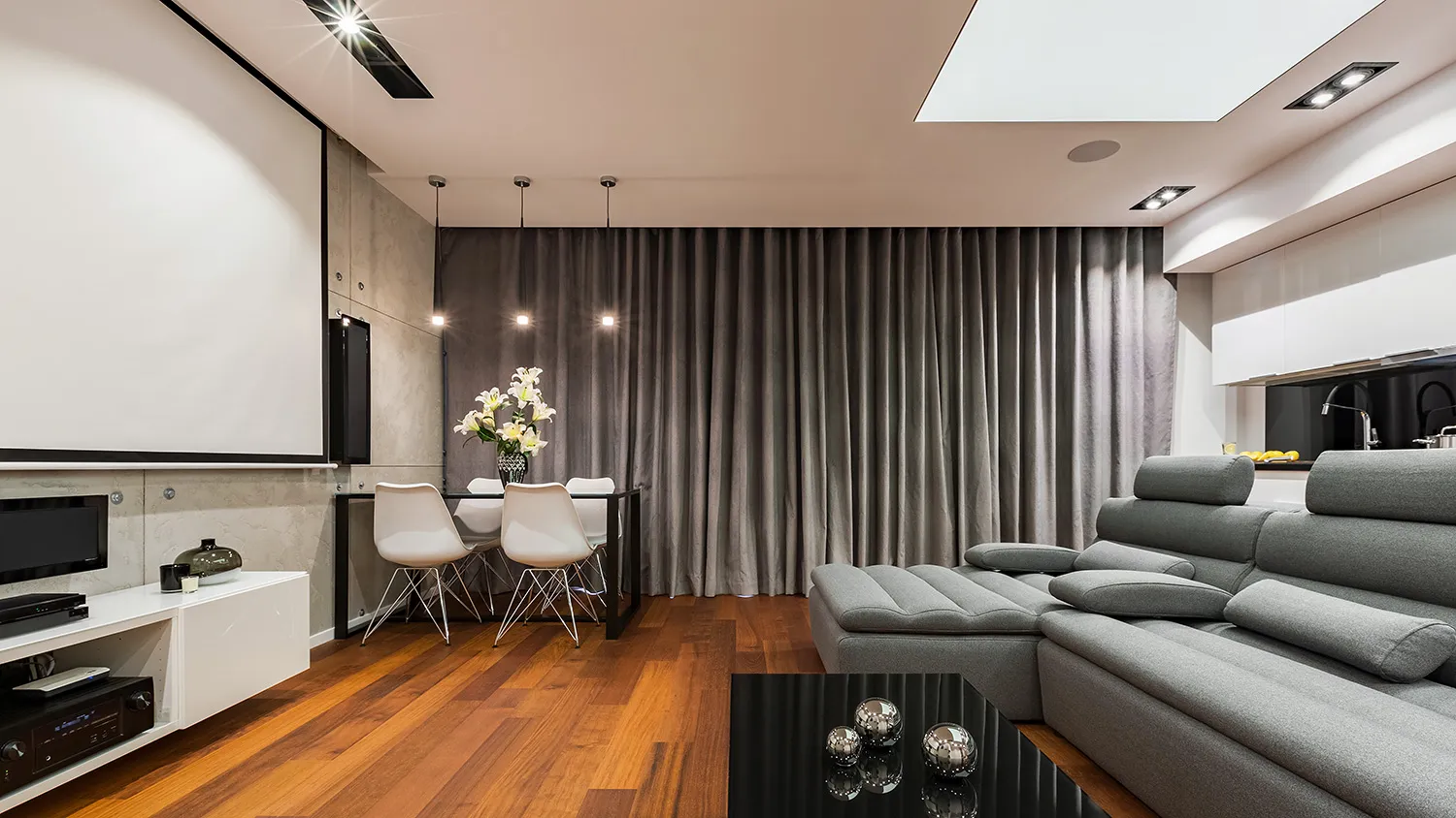 Полная изоляция от света важна и для домашних кинозалов с проекторными экранами. Они разработаны для работы в условиях низкой освещенности. Покрытие с высоким коэффициентом отражения направляет весь свет обратно в зрительную зону, обеспечивая четкость и насыщенность изображения. Внешний свет снижает яркость и динамичность картинки.