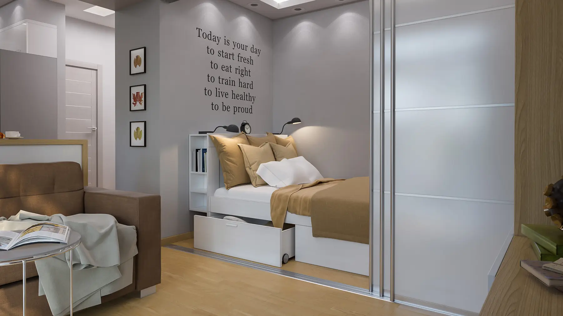 Еще совет — при выборе мебели обратите внимание на трансформеры, которые экономят пространство: шкафы-кровати, пуфы-трансформеры и диваны-кровати.