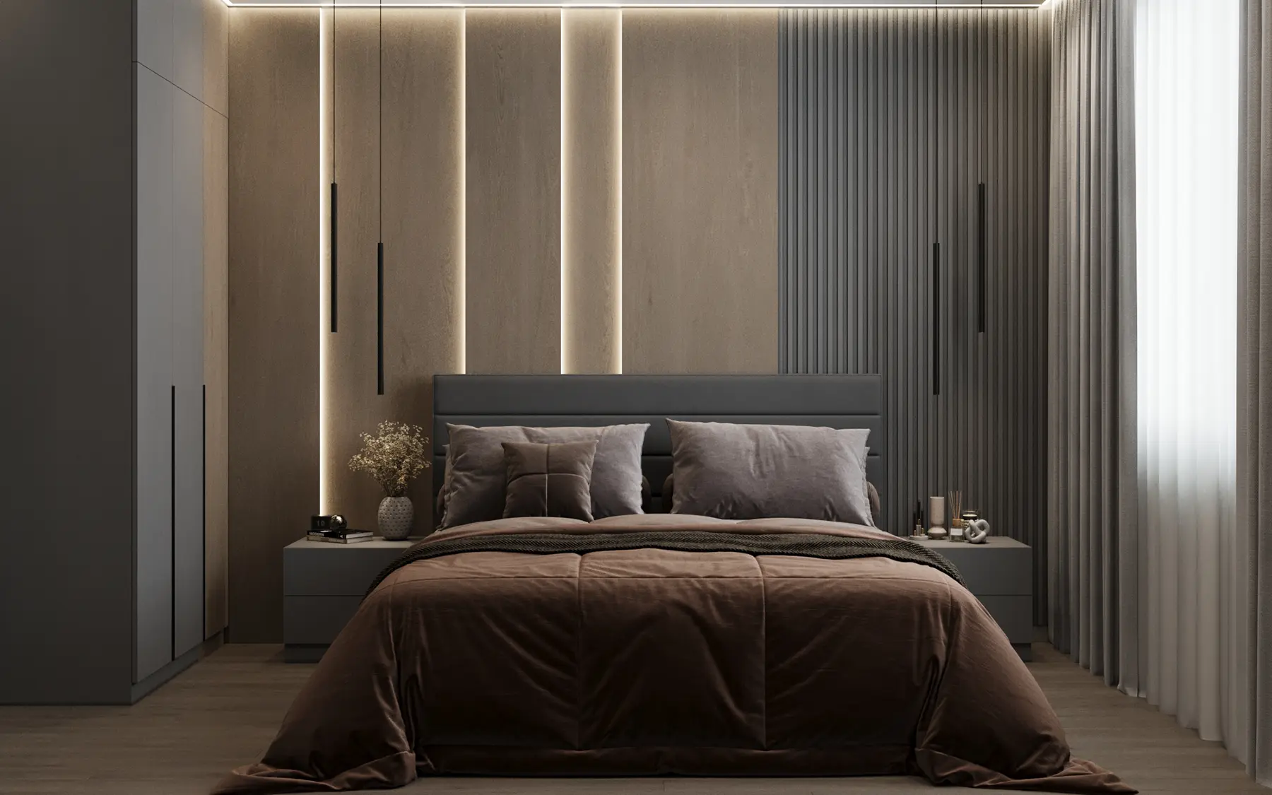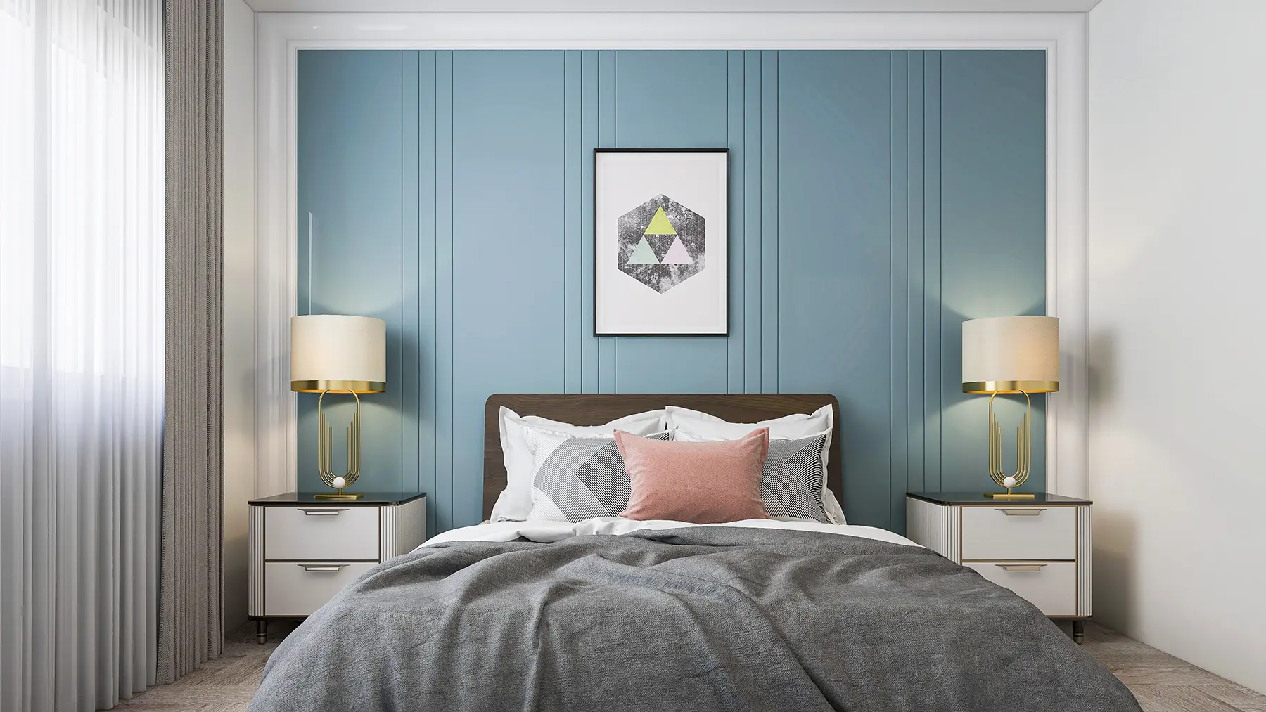 Спальня — место расслабления, поэтому лучше всего оформлять ее в спокойных тонах. В 2025 г. в тренде белый, бежевый, зеленый, синий, кремовый, шоколадный, серый, нежно-розовый или голубой цвета.