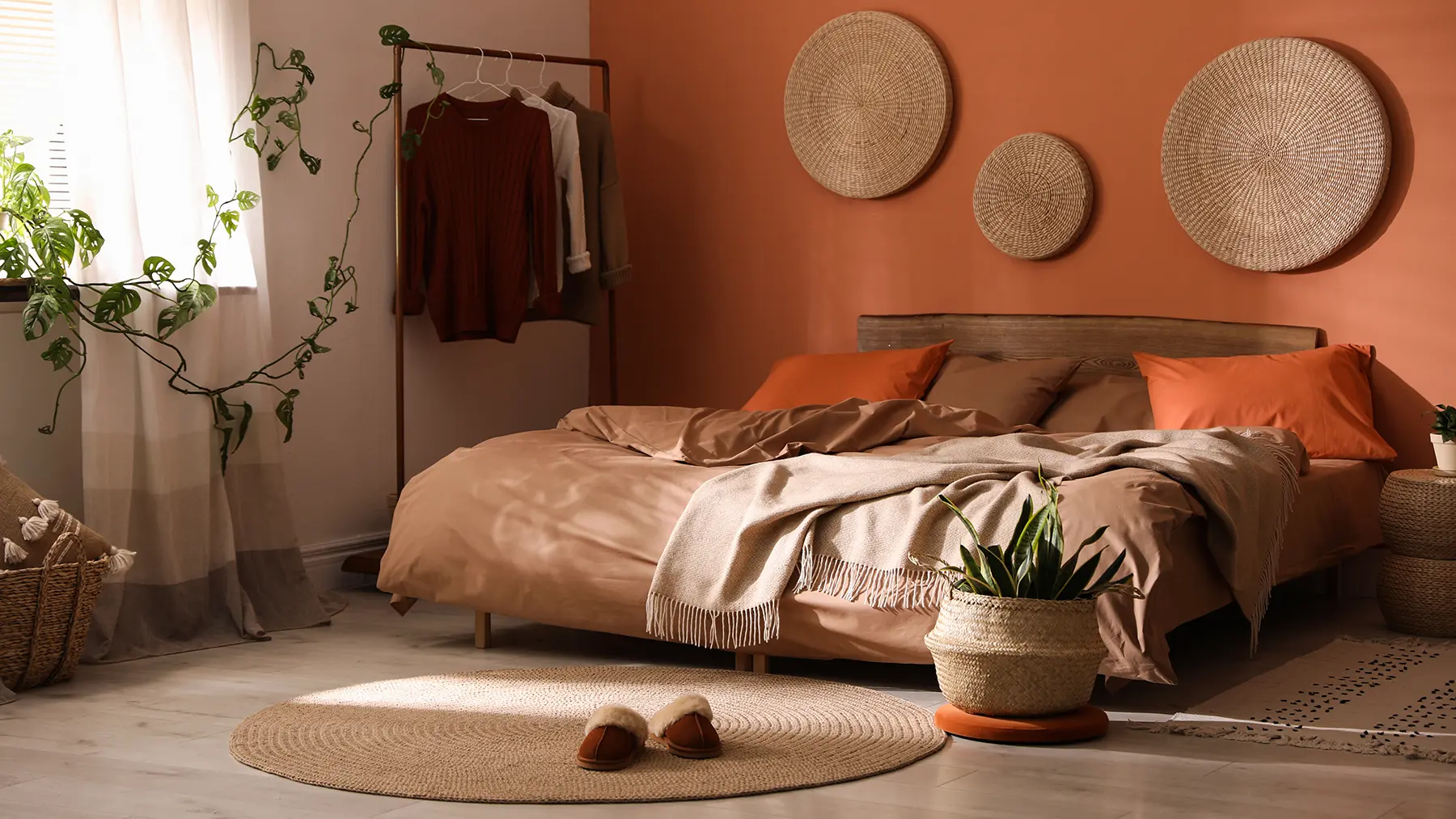 Спокойные терракотовые оттенки можно использовать и как фон в сочетании с белым, бежевым и шоколадным. Такое оформление делает атмосферу теплой и уютной.
