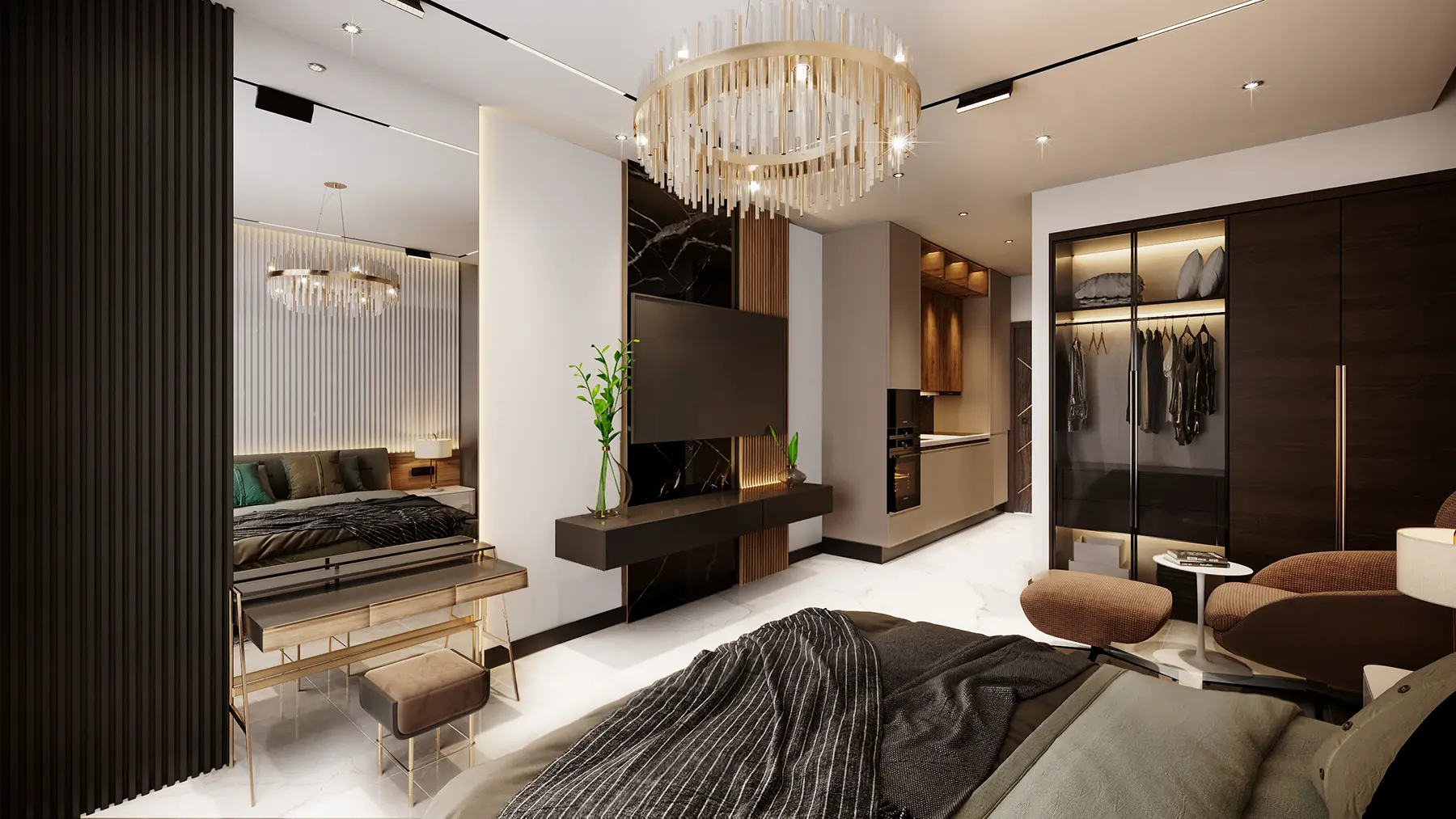 Для моделей с выдвижными ящиками и распашными дверцами убедитесь, что можете их свободно открывать. Это касается и трансформеров: диван-кроватей, раскладных кресел и столов — располагайте их так, чтобы они легко умещались в разложенном состоянии. Важно, чтобы мебель не перекрывала солнечный свет, а вы могли спокойно передвигаться по комнате, не лавируя между тумбами и креслами.