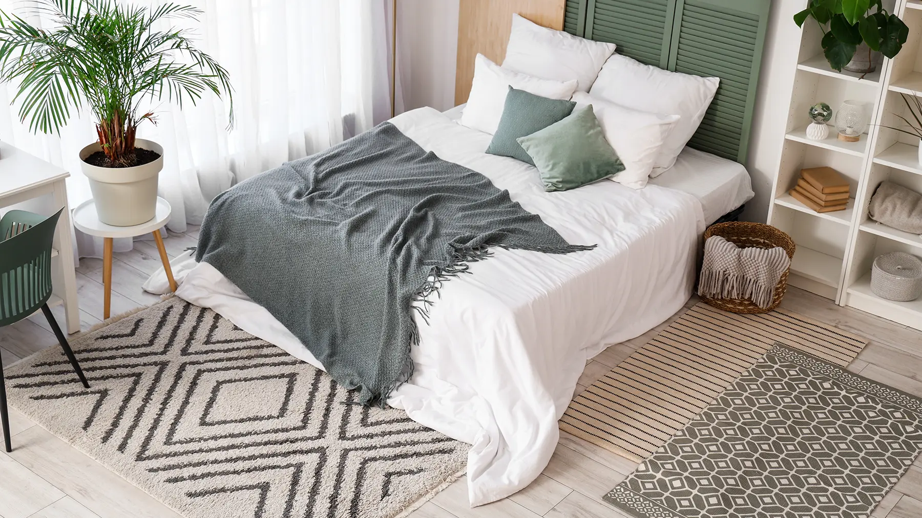 В тренде маленькие прикроватные коврики с геометрическим орнаментом, растительными узорами или абстракцией. Предпочтение отдают изделиям с недлинным ворсом и плотной текстурой — они тактильно приятны и за ними проще ухаживать.