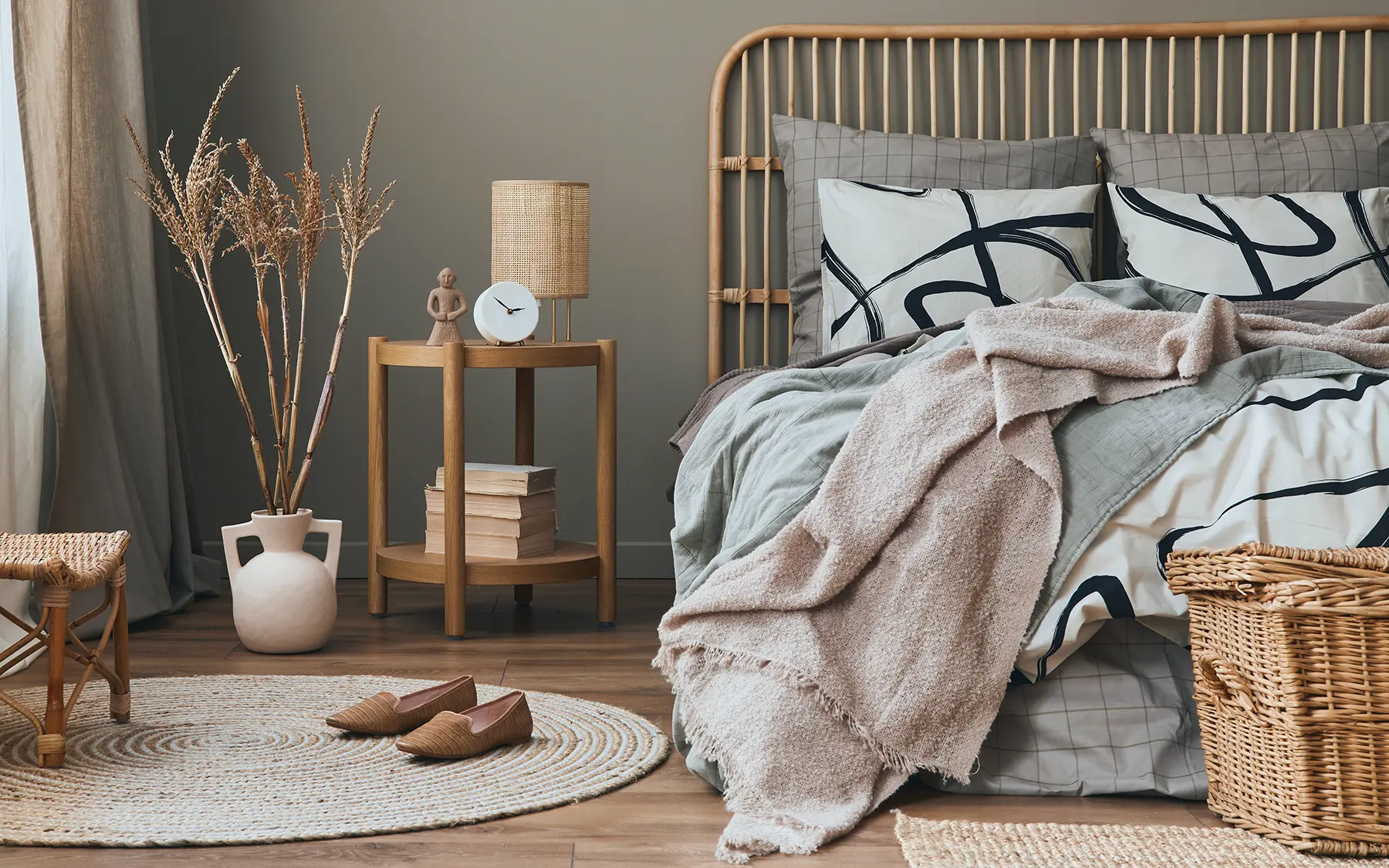 В последние годы набирают популярность деревянные и ротанговые изголовья — это хорошее решение для экоинтерьеров в стилях сканди или бохо.