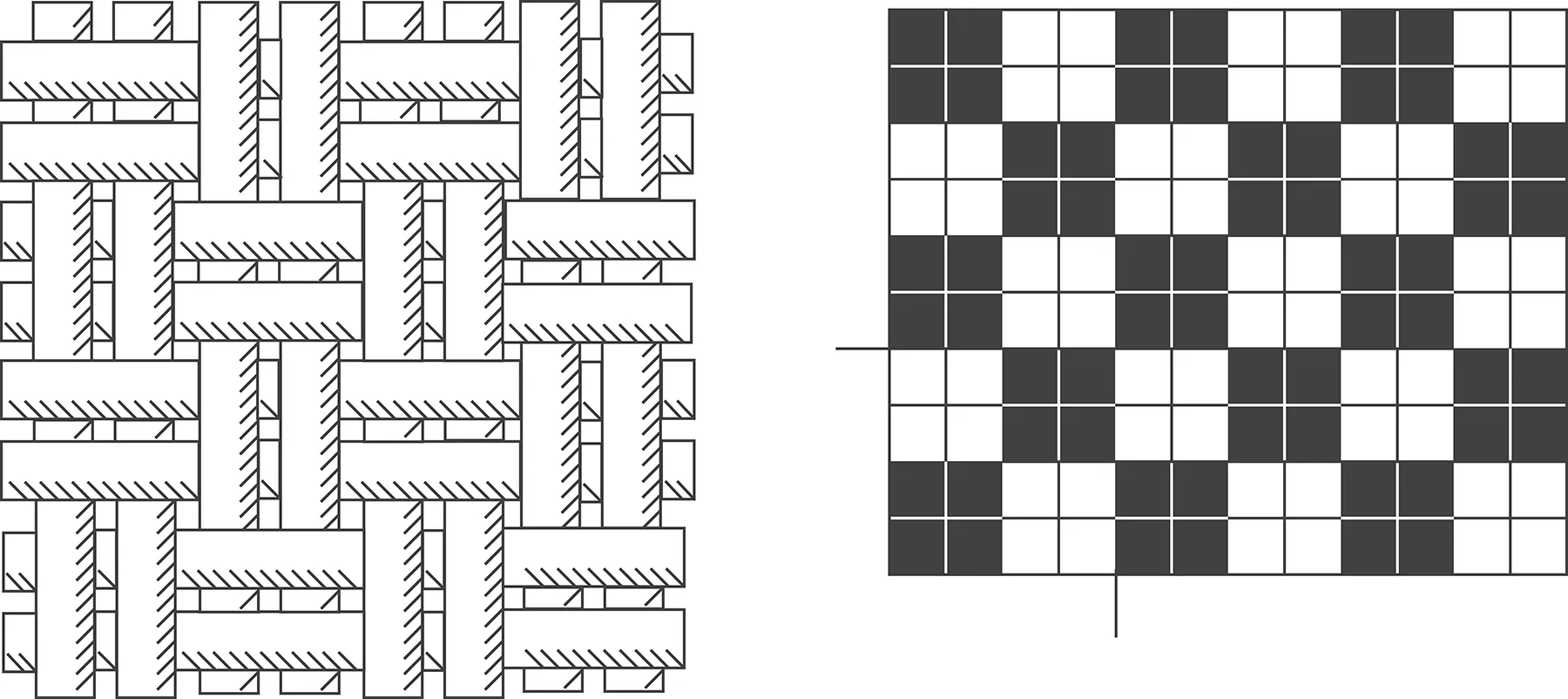 Рогожка — это ткань с рельефным шахматным рисунком, который образуется за счет особого полотняного переплетения. В его классическом варианте используют по одной нити для основы и утка — соответственно продольные (вертикальные) и поперечные (горизонтальные) волокна в структуре материала. Но в случае рогожки их может быть две, три или, гораздо реже, целых четыре.