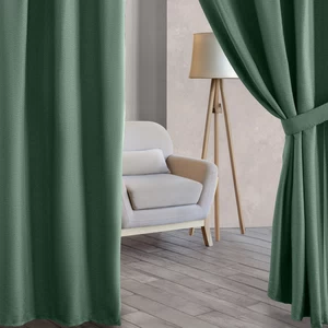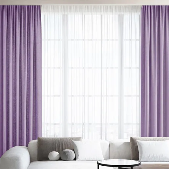 - Интерьерная. Ткут из нитей 0,3–0,6 мм. Получают ткань плотностью 250–350 г/м². Эти показатели дают баланс между прочностью и пластичностью, что важно для покрывал, наволочек под декоративные подушки. Из такой рогожки также делают шторы. Особенно популярны блэкаут, которые полностью блокируют солнечный свет.