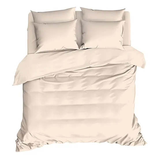 - Ткань одинаково привлекательна с обеих сторон. Есть лишь небольшая тактильная и визуальная разница: лицевая поверхность — гладкая с заметным блеском, изнаночная — чуть шероховатая. За счет этого белье меньше скользит по матрасу.
