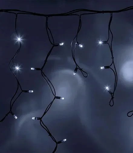«Сосулька» состоит из основного провода, к которому на разной длине крепятся свисающие световые нити. По форме они напоминают ледяные сосульки, что добавляет атмосферности в зимнее время. Холодное белое или голубоватое свечение усиливает эффект.