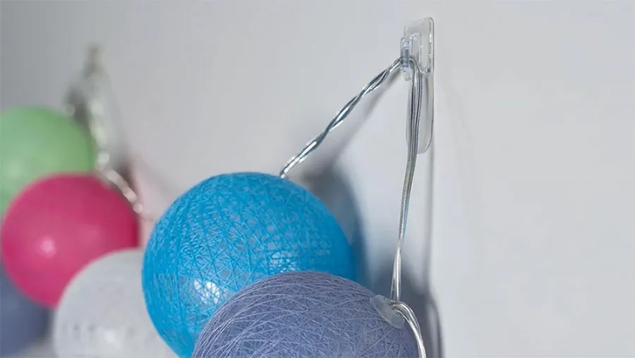 Крепление гирлянды должно быть надежным, чтобы она не оторвалась в самый неожиданный момент. Но при этом таким, чтобы не повредить стены или мебель.