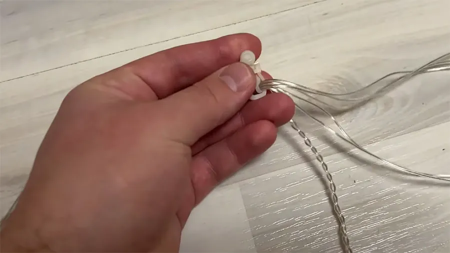 - Пластиковые клипсы — подходят, если хотите повесить гирлянду на шторах, не просто обмотав вокруг карниза наверху, а рядами. Располагайте крепления через равные промежутки, просто прищипывая ткань.