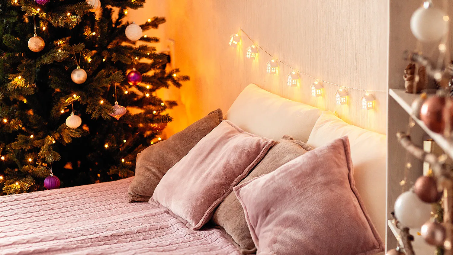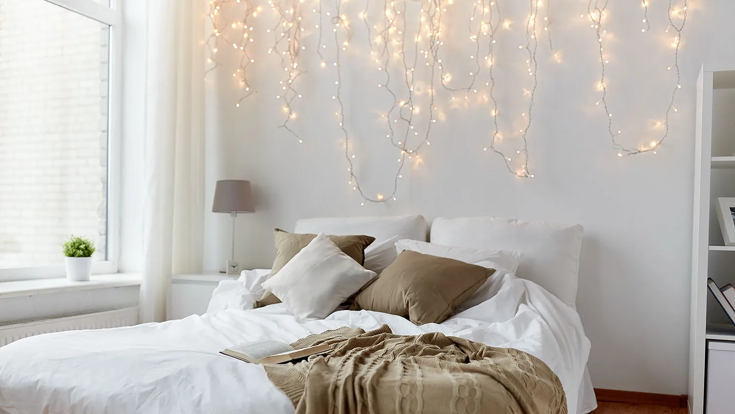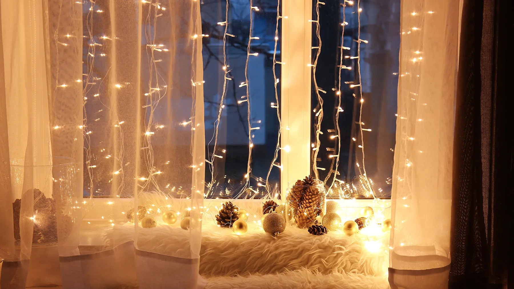 Такая гирлянда эффектно смотрится на больших окнах в гостиной или столовой, а вот для спальни может быть слишком яркой.