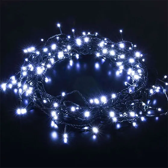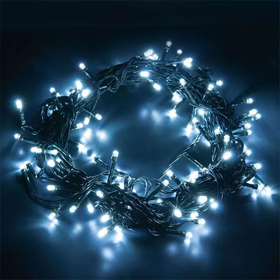 Уделите внимание цвету. Для оформления стен или окон подойдет гирлянда с белым или прозрачным проводом. Красиво смотрятся медные и серебряные шнуры. Если выбираете гирлянду для елки, возьмите изделие с зеленым кабелем, а для уличных деревьев — с коричневым, черным или прозрачным.