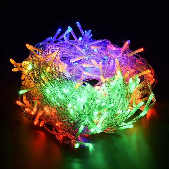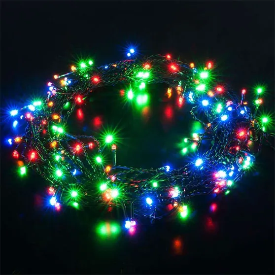 Разноцветные гирлянды создают яркую праздничную атмосферу, особенно если включить режим мерцания или смены цветов. Этот вариант подойдет для елки в гостиной, оформления окон и дверных проемов, украшения детской.