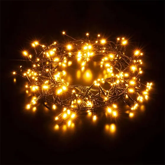 Сейчас популярна разновидность этой классической модели — гирлянда «роса». Отличается тонким проводом и миниатюрными светодиодами соответствующей формы. Ею украшают большие елки, камины и полки, мебель, окна.