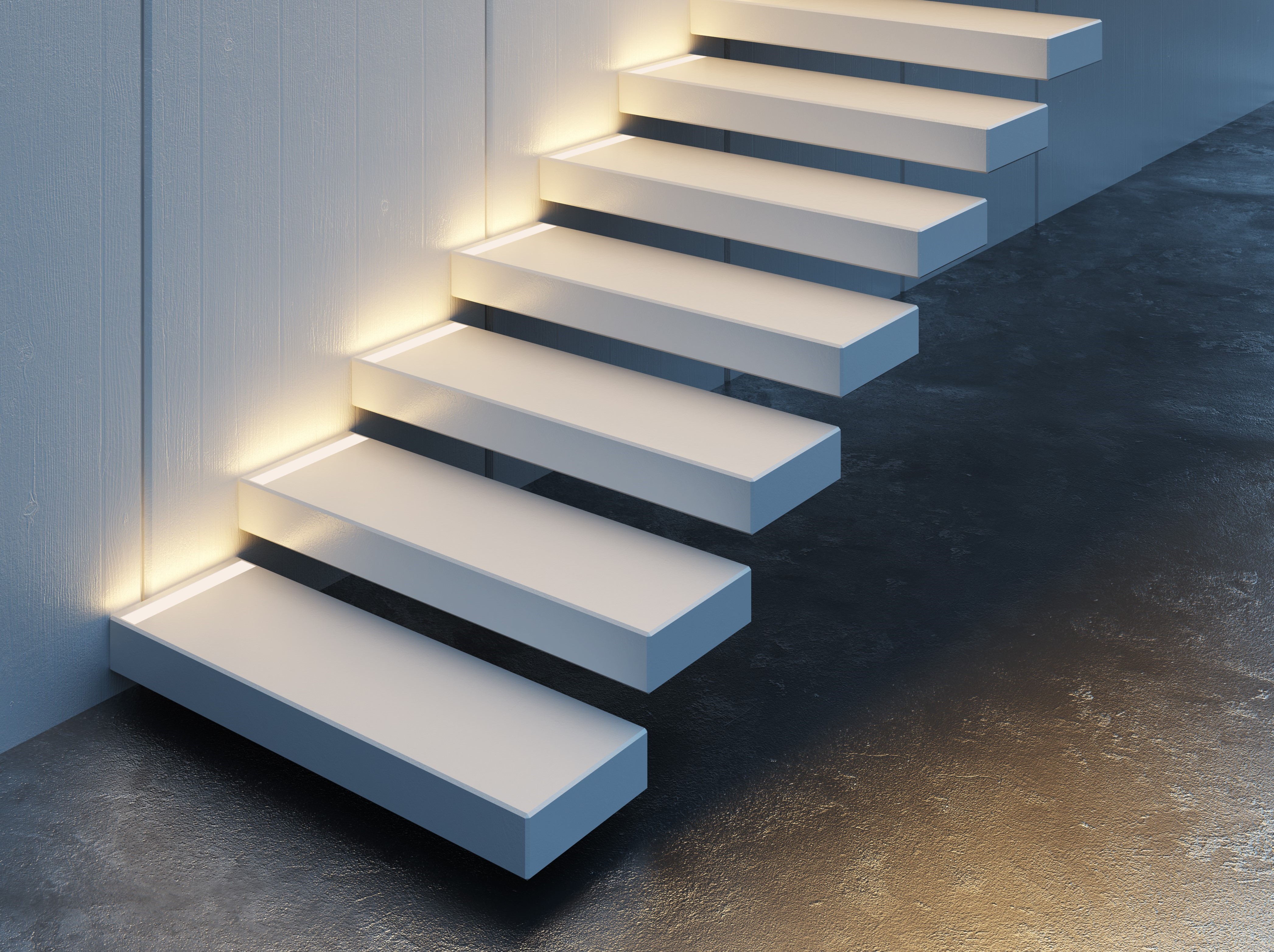 «Парящая» лестница со скрытой внутри светодиодной лентой