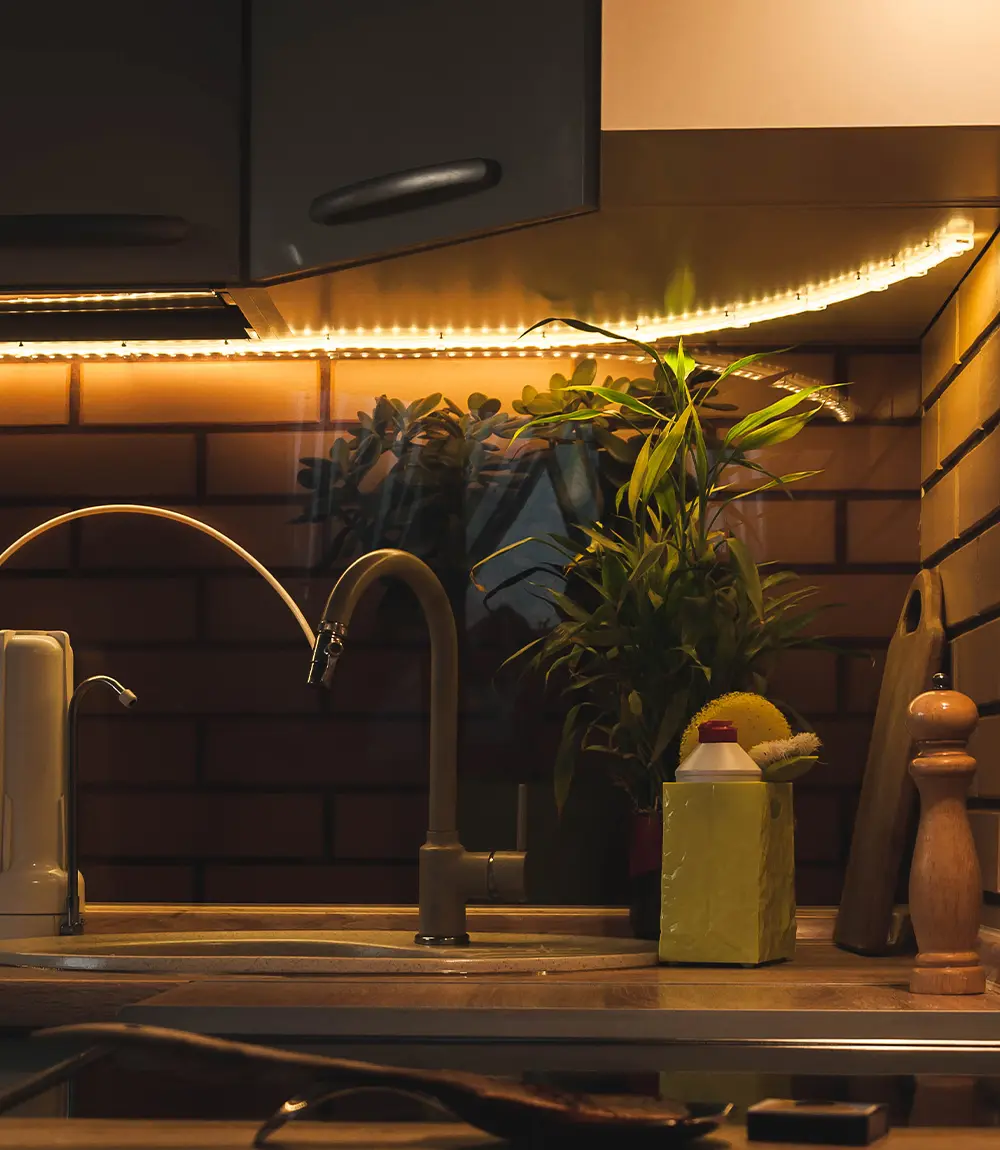 - декоративную подсветку элементов дизайна, если они есть у вас на кухне