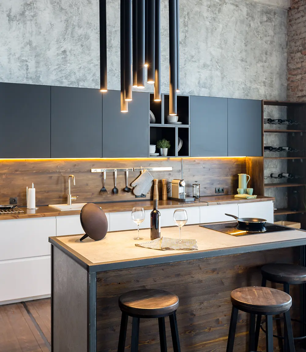 Узнайте большеСамый простой способ установки светильников над барной стойкой — расположить их в ряд, прикрепив к потолку, или повесить несколько бра на стену. Сложные световые конструкции можно встретить на кухнях в стиле лофт или минимализм.