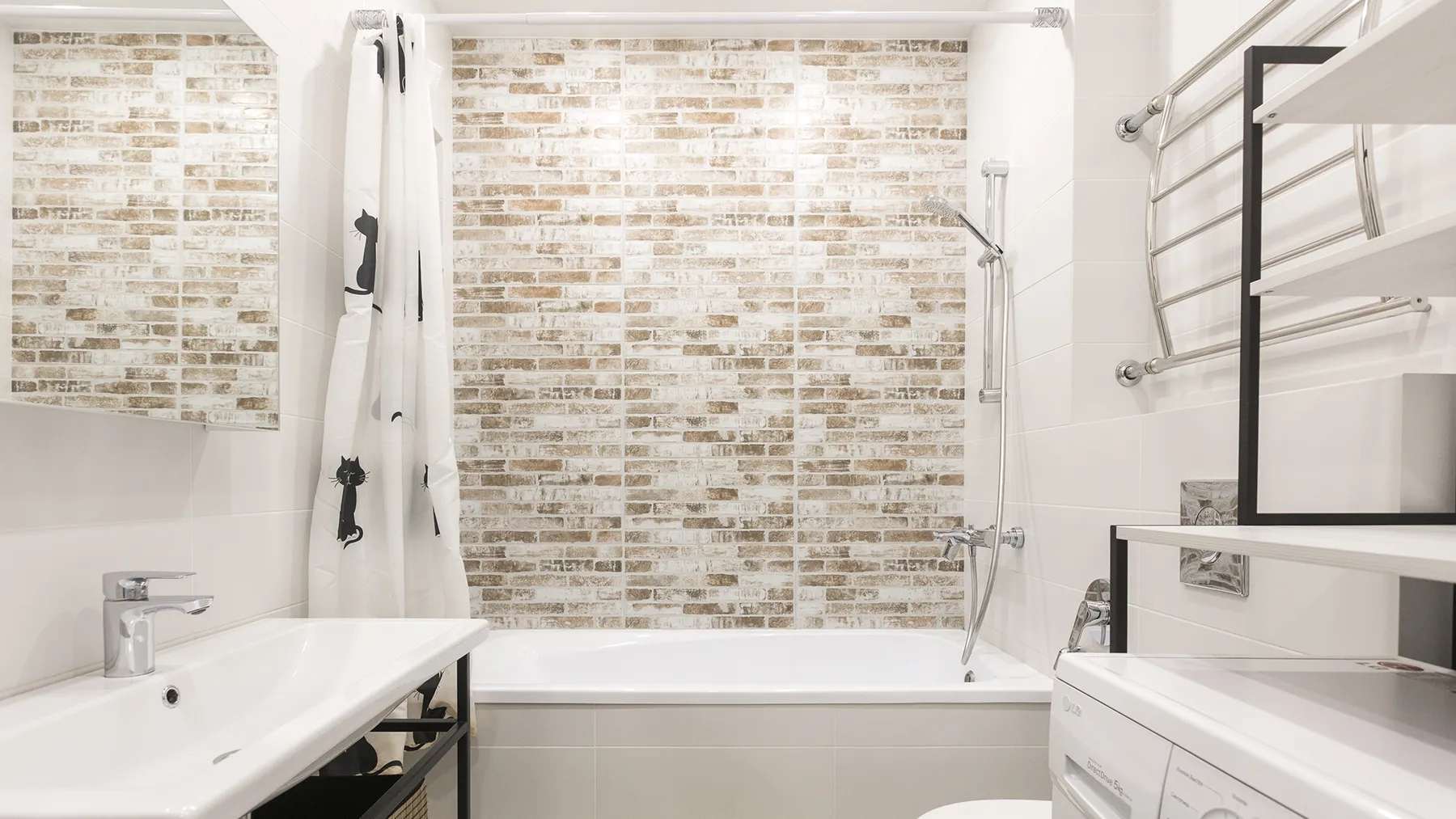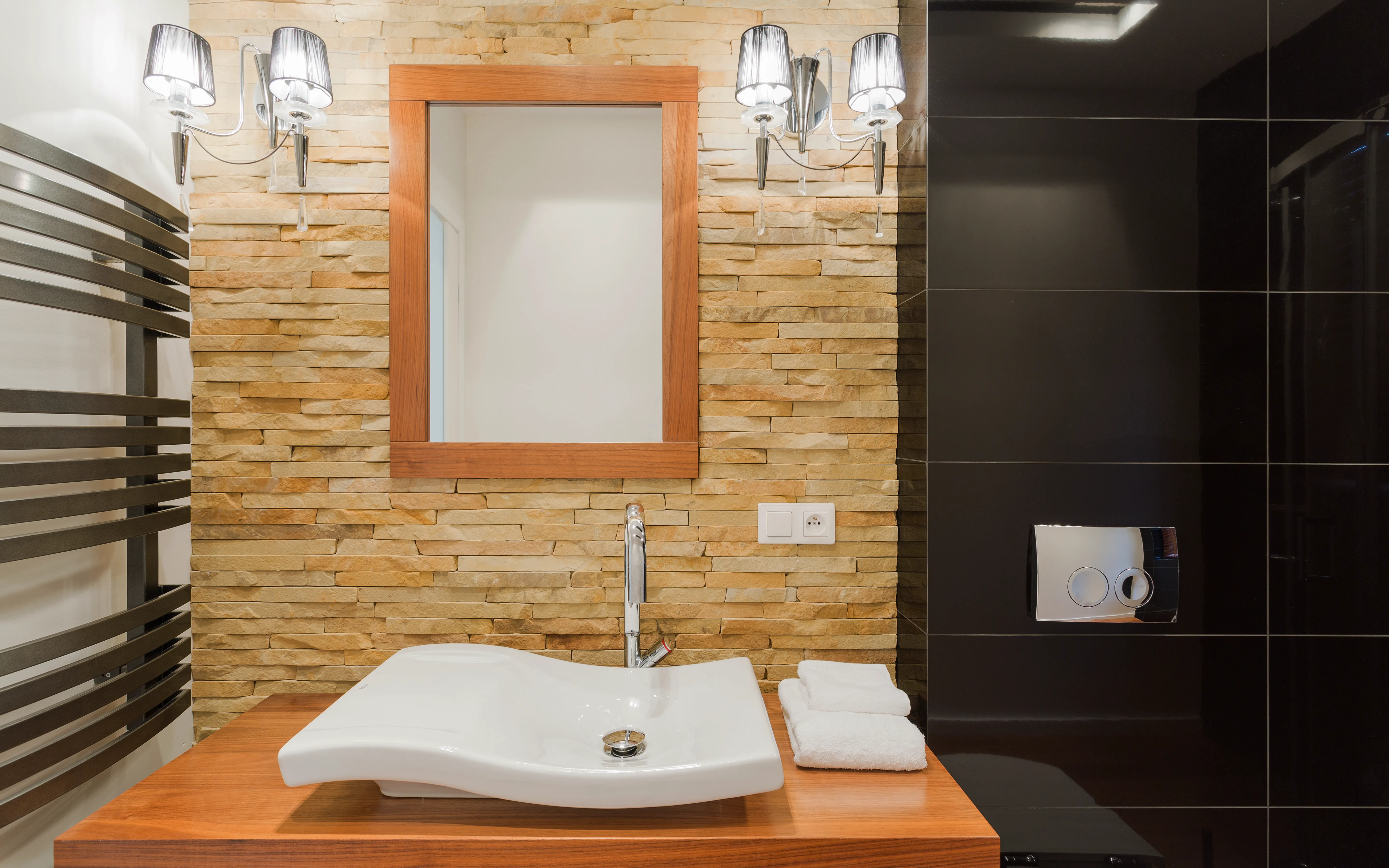 Броско выглядит отделка искусственным камнем. Обычно им облицовывают одну из стен, делая ее акцентной, например зону ванны. А отделка под кирпич — визитная карточка стиля лофт.