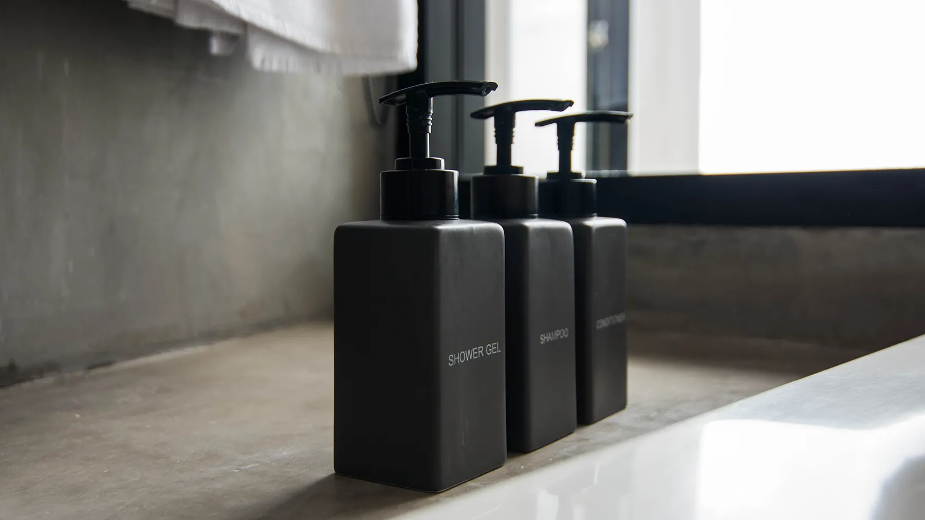 Чтобы не допускать визуального беспорядка, используйте флаконы и контейнеры в одном дизайне. Особенно если в оформлении вы придерживаетесь минималистических принципов.
