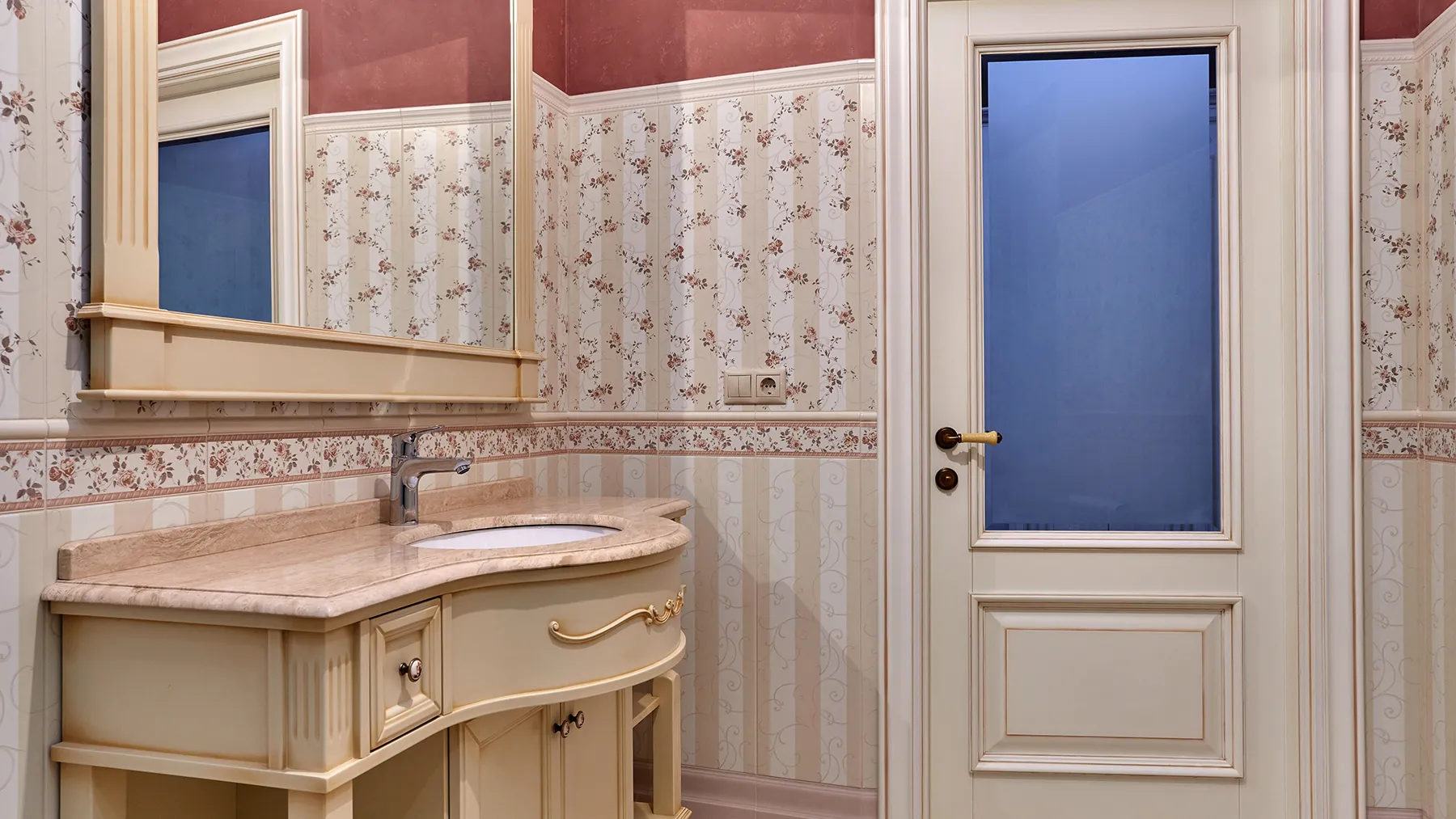 Учитывайте, что обычные материалы не подойдут даже для сухих зон санузла. Поэтому выбирайте влагоустойчивые краску и обои, которые хорошо переносят повышенную влажность.