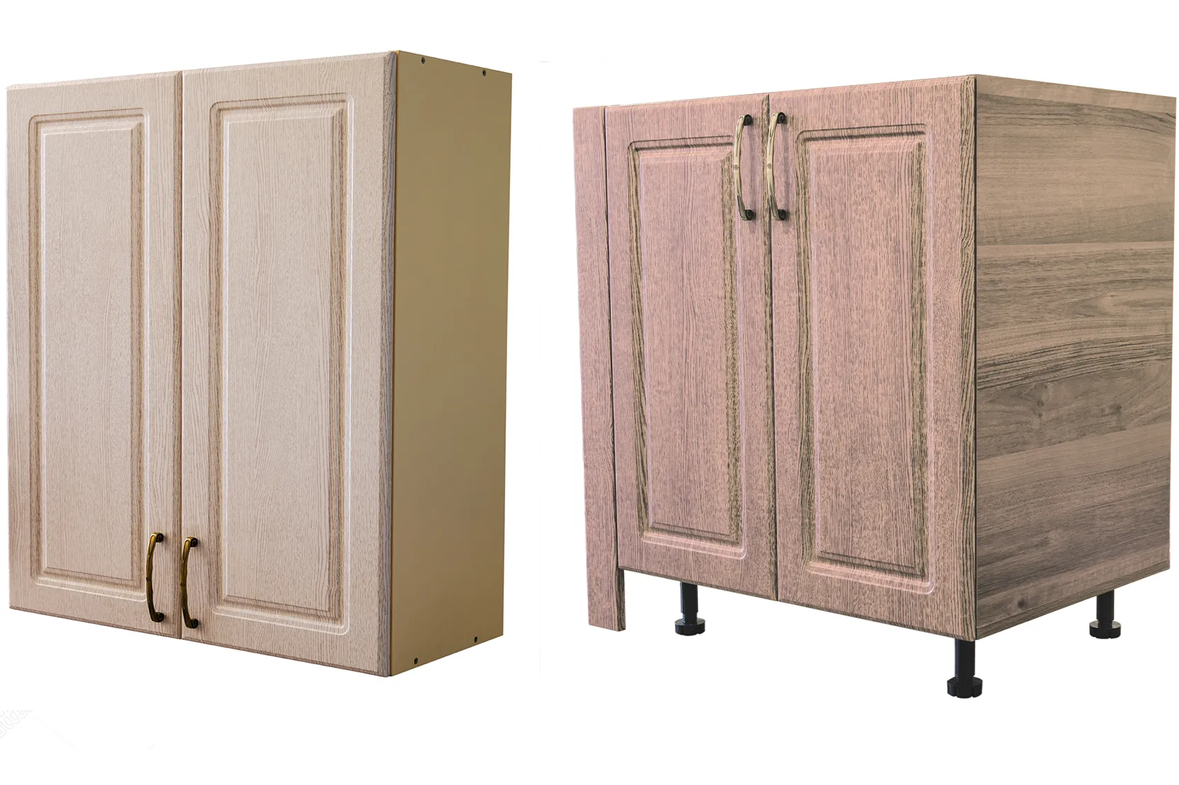 Когда соберете все корпусы верхнего модуля, подготовьте стены к навеске шкафов. Но перед этим определитесь, на какой высоте вы будете их вешать. Если в комплекте мебели есть высокий напольный пенал, то нужно ориентироваться на его высоту. Если пенала нет, то высота зависит от высоты столешницы и фартука (стеновой панели).