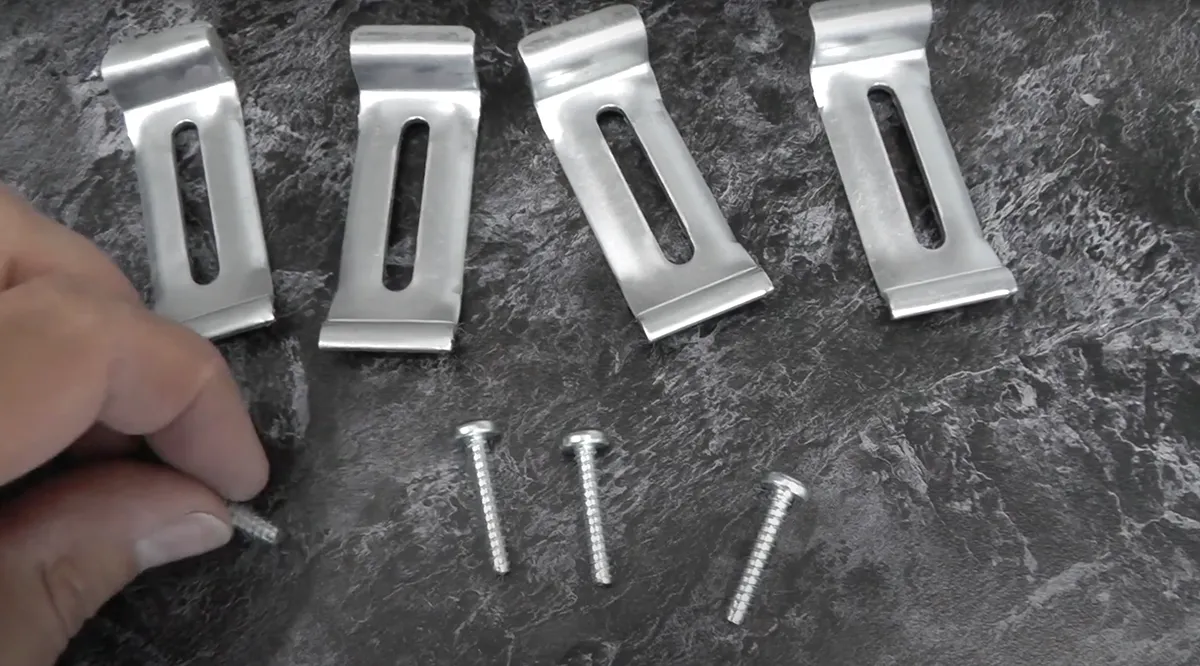 Узнайте большеВставьте панель в отверстие. Снизу установите скобы (они тоже идут в комплекте) и закрутите их шурупами. Проверьте установку по уровню.