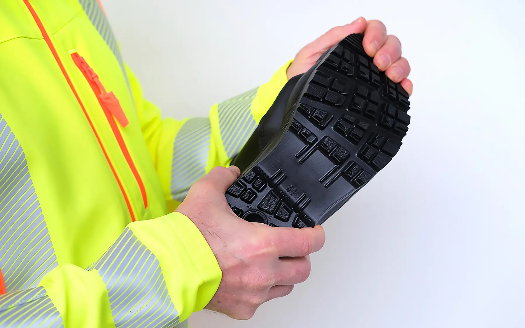 Чтобы рабочая обувь не скользила, на подошве должны быть высокие протекторы или шипы для хорошего сцепления с мокрой, маслянистой или скользкой поверхностью.