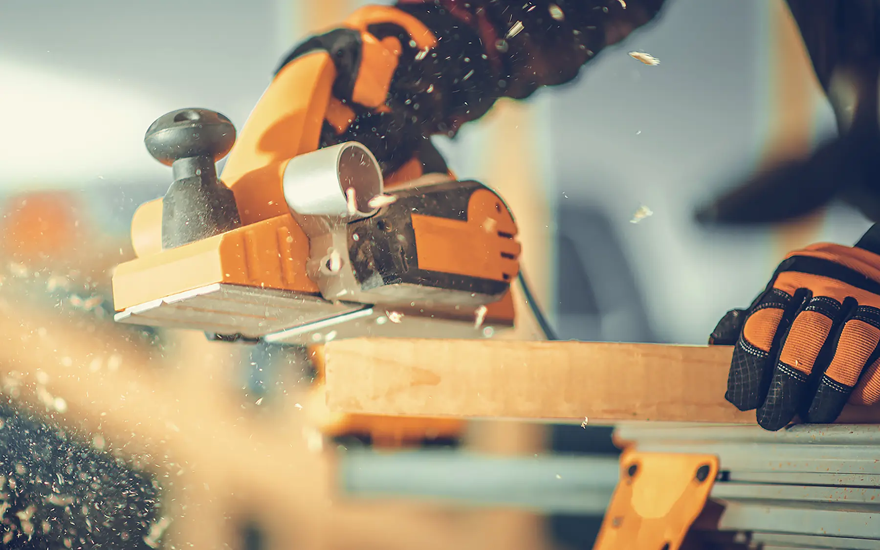 На рукавах куртки плотника должны быть плотно прилегающие к рукам манжеты — так рукава не попадут в станок. Защитить руки от заноз и царапин помогут хлопковые защитные перчатки. Глаза защищают очками или маской.