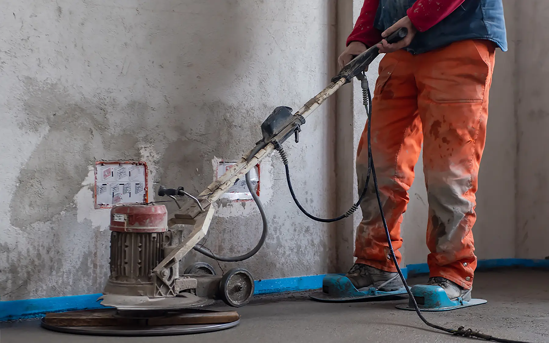При стяжке пола помимо стандартного костюма и ботинок или сапог с усиленным носком нужны полимерные перчатки для защиты кистей рук от загрязнений. Для защиты дыхания от частиц сухого бетона у рабочего должна быть маска, а для защиты глаз — очки. Для мокрой стяжки можно дополнить спецовку водоотталкивающим плащом.