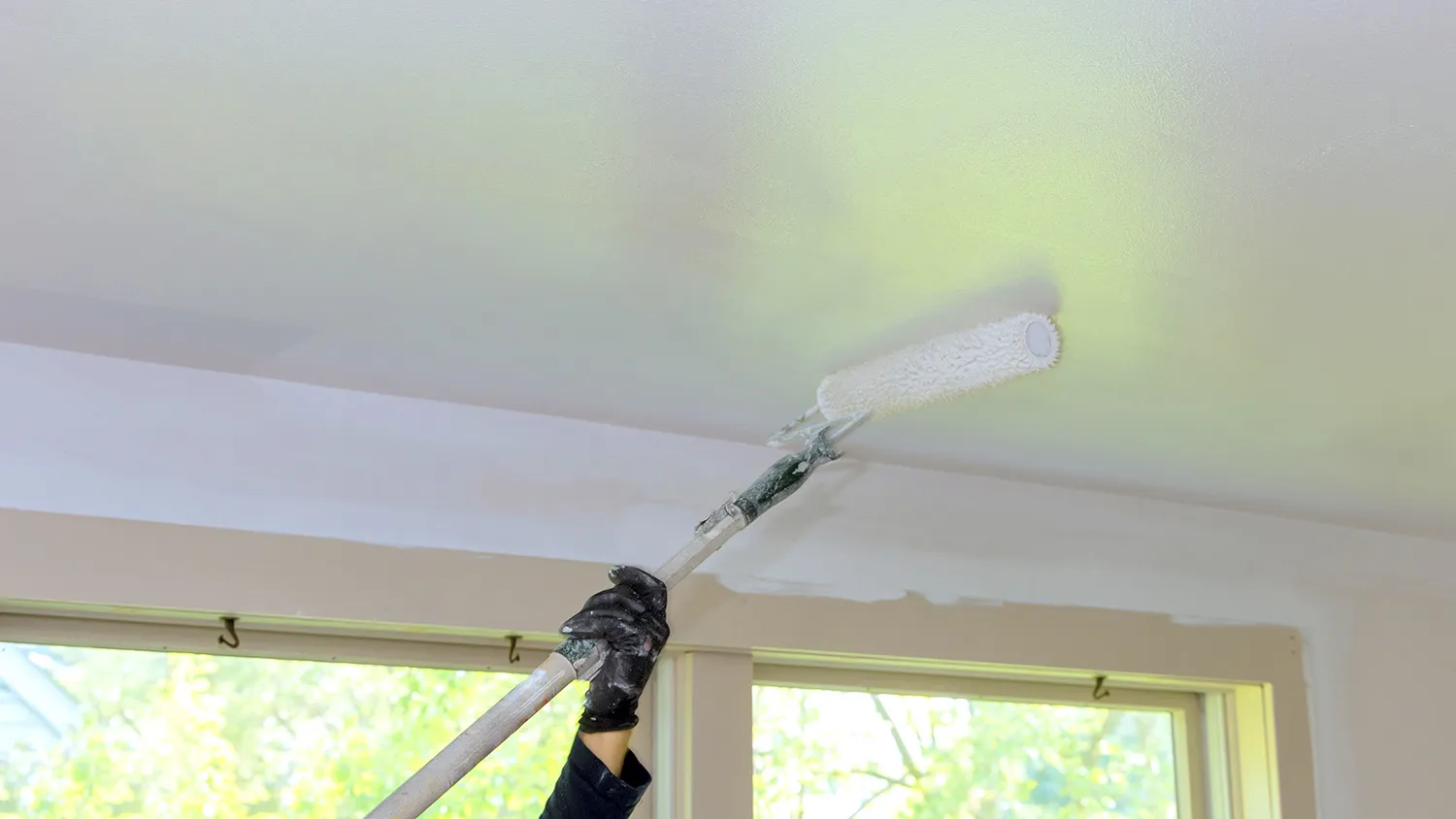 - Если потолок будут красить, правило «сверху вниз» соблюдают строго. Сначала полностью завершают все работы с потолком (шпаклевку, шлифовку, покраску), а затем переходят к чистовой отделке стен. Распространенные варианты для последних — обои, краска и декоративная штукатурка.