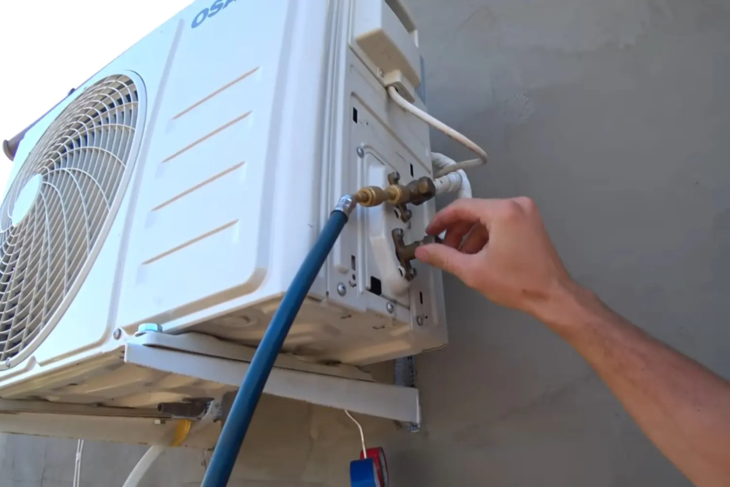 - Обязательно используйте страховку, если наружный блок находится выше первого этажа. Падение блока или человека с высоты может закончиться трагически. Не работайте в одиночку — помощник должен быть рядом.