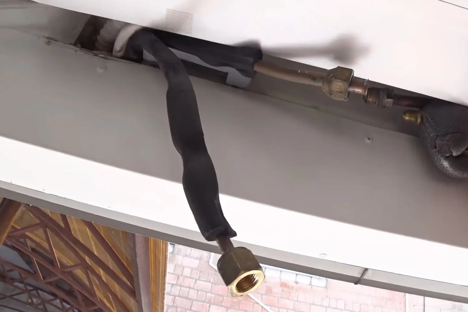 Вытягивание межблочной трассы кондиционера. Источник: Youtube | SтройФикс